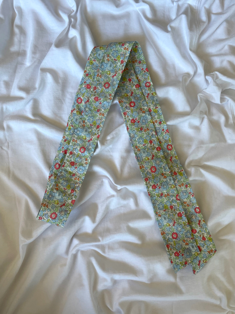 Cette création est réalisée 100% coton liberty certifié Oeko-Tex*. La taille peut varier entre 120 et 130cm x 4-5cm.