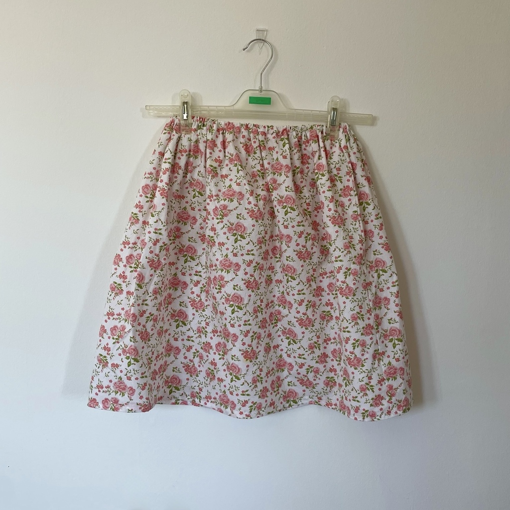 La jupe affichée a été cousue pour un XS et mesure 50cm de longueur. Cette création est réalisée 100% coton certifié Oeko-Tex*. La taille est élastique pour un maximum de confort.